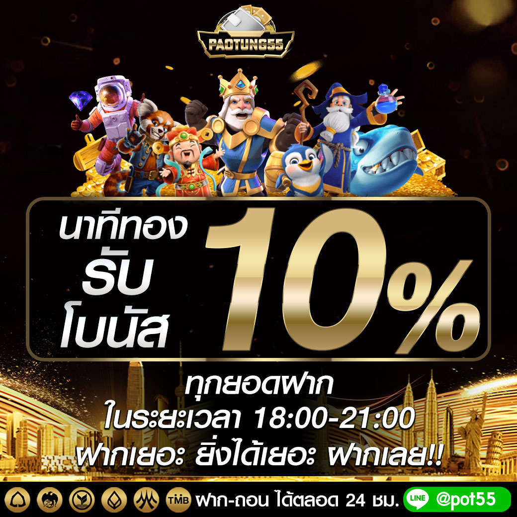 เอาล่ะ มาดูกันดีกว่าว่าโปรโมชั่นล่าสุดของ Paotung55 มีอะไรน่าสนใจบ้าง เริ่มจากโปรโมชั่นสำหรับสมาชิกใหม่ที่บอกเลยว่าคุ้มค่าสุดๆ เพียงแค่สมัครสมาชิกและฝากเงินครั้งแรก ก็รับโบนัสเพิ่มไปเลยแบบเน้นๆ ซึ่งโบนัสที่ได้เนี่ย สามารถนำไปใช้เล่นเกมต่างๆ ได้ตามใจชอบ ทำให้เรามีโอกาสทำกำไรได้มากขึ้นไปอีก