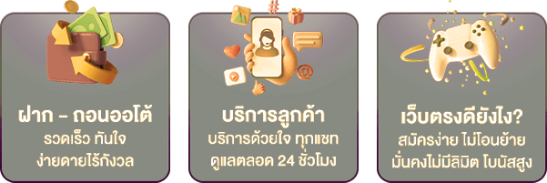 ตอบ : จุดเด่นคือโปรโมชั่นหลากหลาย, ระบบฝากถอนรวดเร็ว, และเกมให้เลือกเล่นจำนวนมาก